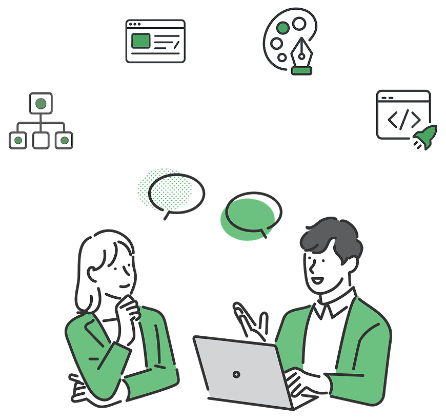ヒアリングやFigmaだけの情報でも、構成や要素を整理し、訪問者に伝わる形へ具体化します。