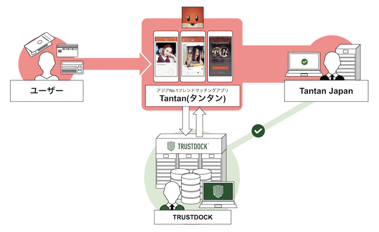Tantan 日本版では、メッセージなどマッチング以降の利用のためには、出会い系サイト規制法に準拠したe-KYC/本人確認APIサービス「TRUSTDOCK」を使っての年齢確認を実施の上、サービスを提供しています。