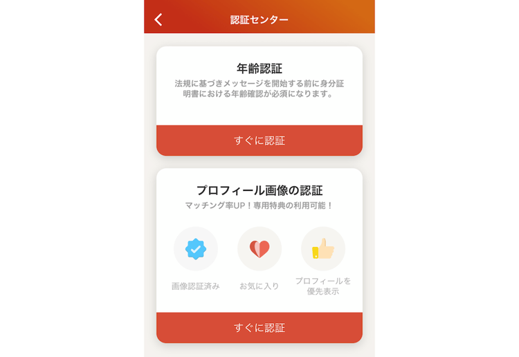石川:アプリ内に「認証センター」があり、アプリ内カメラでセルフィーを撮影することで、プロフィールにアップロードされた画像の顔との一致性をみて、プロフィール画像を詐称していないことを確認しています。